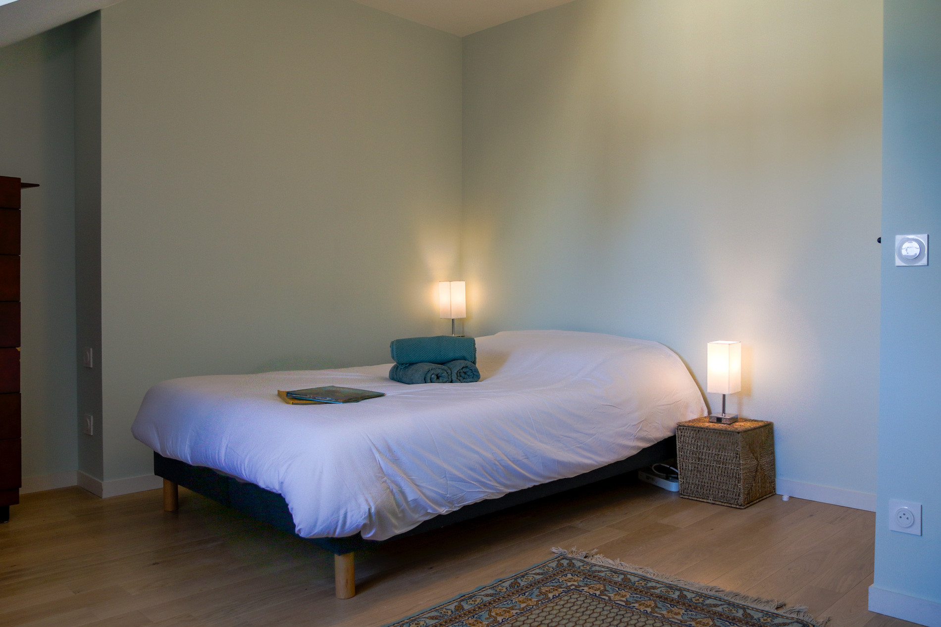 The apartment has two bedrooms located upstairs: one bedroom can accommodate up to 3 people thanks to its double bed (140x190) and a chair bed, ideal for a child (90x190). Another bedroom offers a double bed (140x190). These bedrooms share a bathroom with a shower and integrated toilet. Another toilet is located on the ground floor.Ideally located in Cancale, close to shops, restaurants, and the coastal path, the Bel Étage Cancalais apartment is a perfect rental to fully enjoy your stay in Brittany, combining relaxation and discovery.