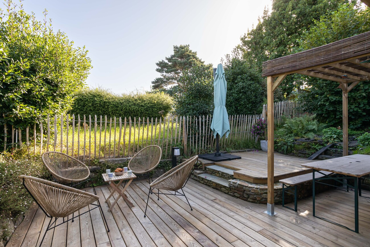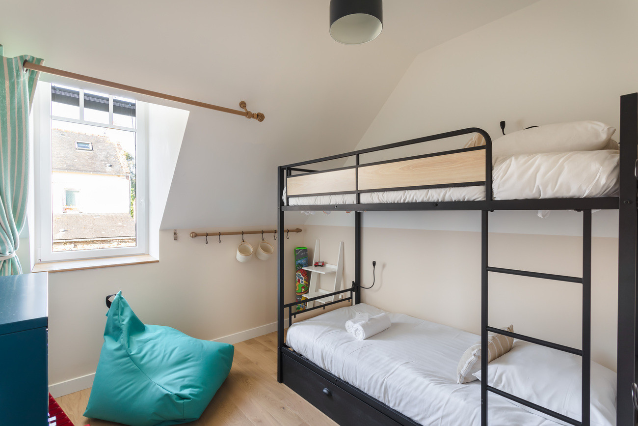 From the moment you step inside, you will be charmed by its beautiful 50 m² living area. This generous space brings together a lounge (sofa bed that can be used as a double bed upon request), a warm dining area, and a fully equipped and functional open-plan kitchen. Direct access from the kitchen to the terrace makes it easy to enjoy outdoor meals and long summer evenings.Holiday rental in Brittany with two comfortable bedrooms upstairs