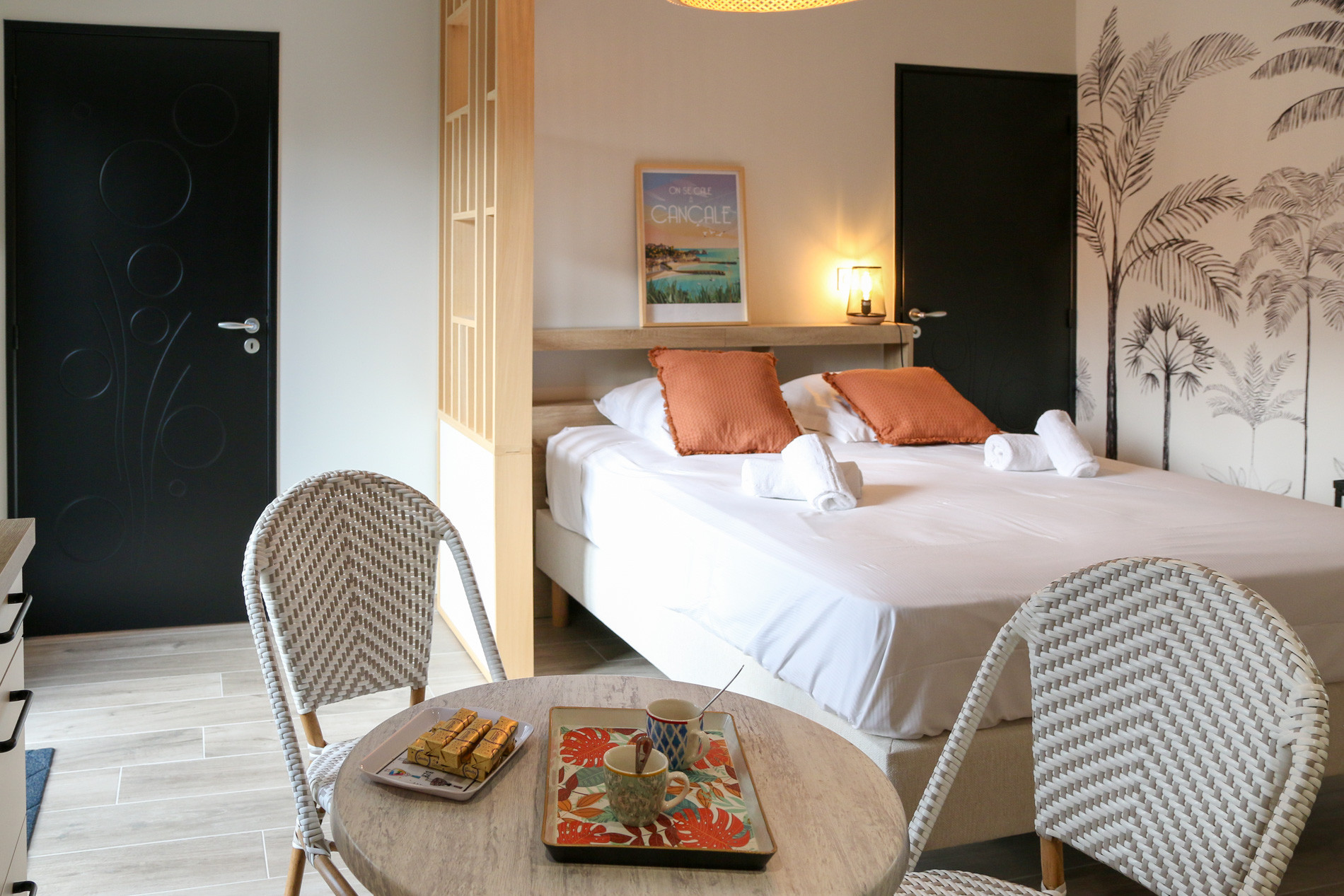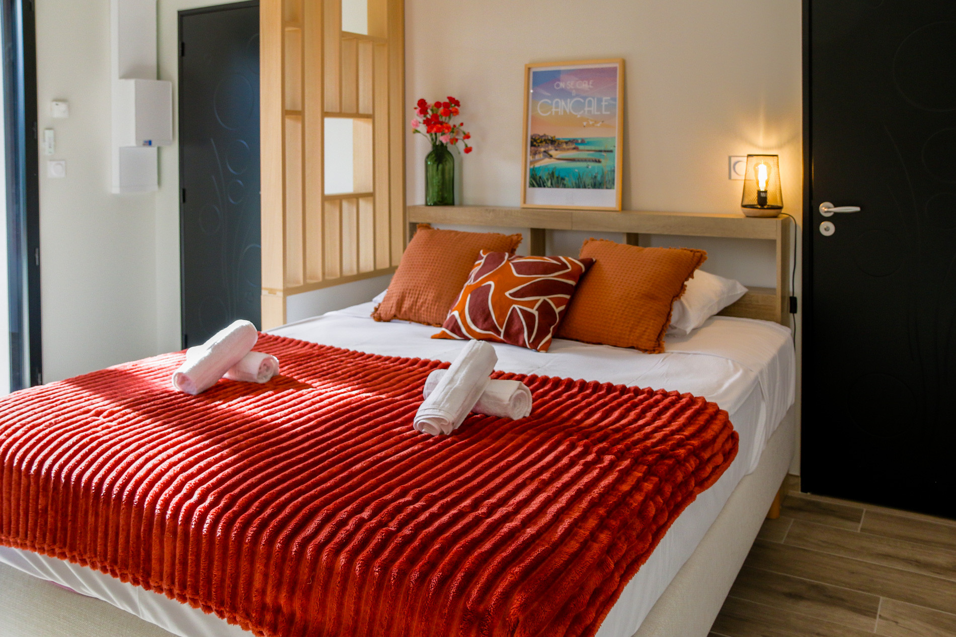 Brand new, this contemporary cocoon appeals with the quality of its amenities and equipment. It offers a Queen-size bed (160x200), a modern bathroom, and a fully equipped kitchenette.Charming studio with private terrace near Saint-Malo