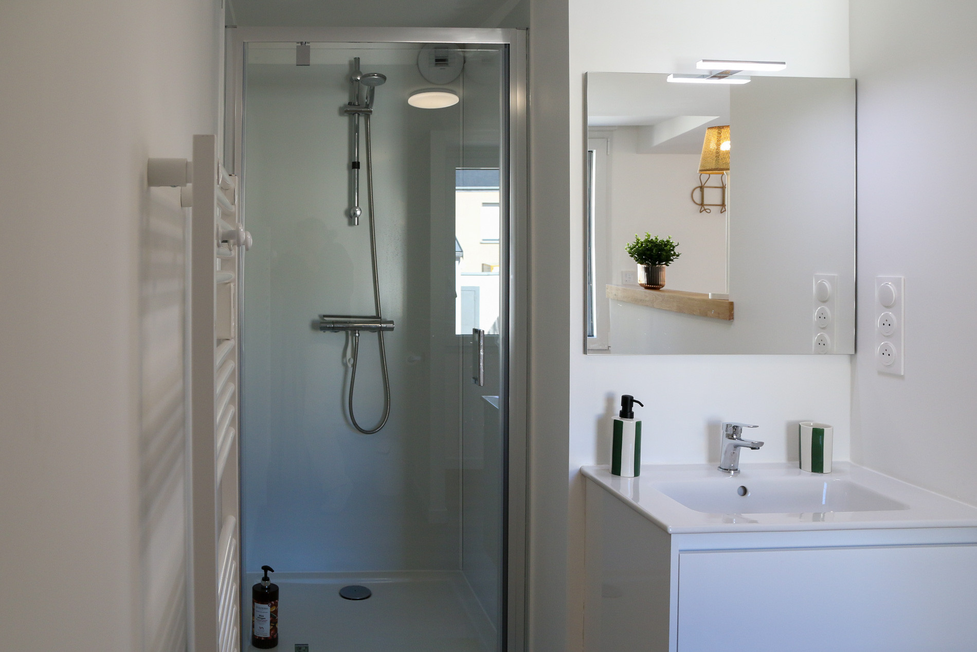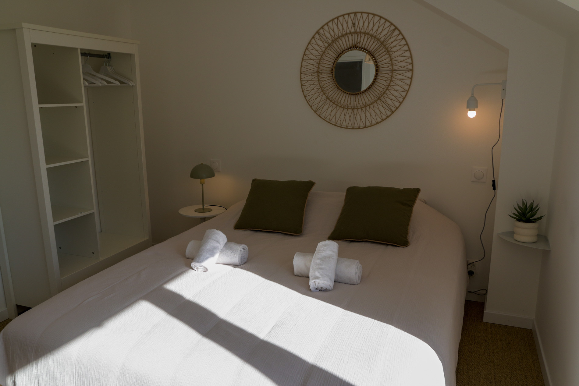 À l’étage de la maison principale (escalier raide), deux belles chambres doubles, l’une avec lit Queen size (160x200), l’autre avec lit double (140x160), offrent des espaces reposants et lumineux. Une troisième chambre « cabine » est équipée de lits superposés (70 x 160 cm) exclusivement adaptés aux enfants de moins de 12 ans. Ces 3 chambres se partagent une salle de bain avec douche et toilettes intégrées. La propriété est complétée par une dépendance d’environ 20 m², véritable atout pour préserver l’intimité de chacun. Elle dispose d’un lit double (140X190) ainsi que de sa propre salle de bain avec WC, idéale pour un couple ou des invités souhaitant plus d'indépendance.Maison de vacances avec terrasse plein sud et piscine proche de Saint-Malo