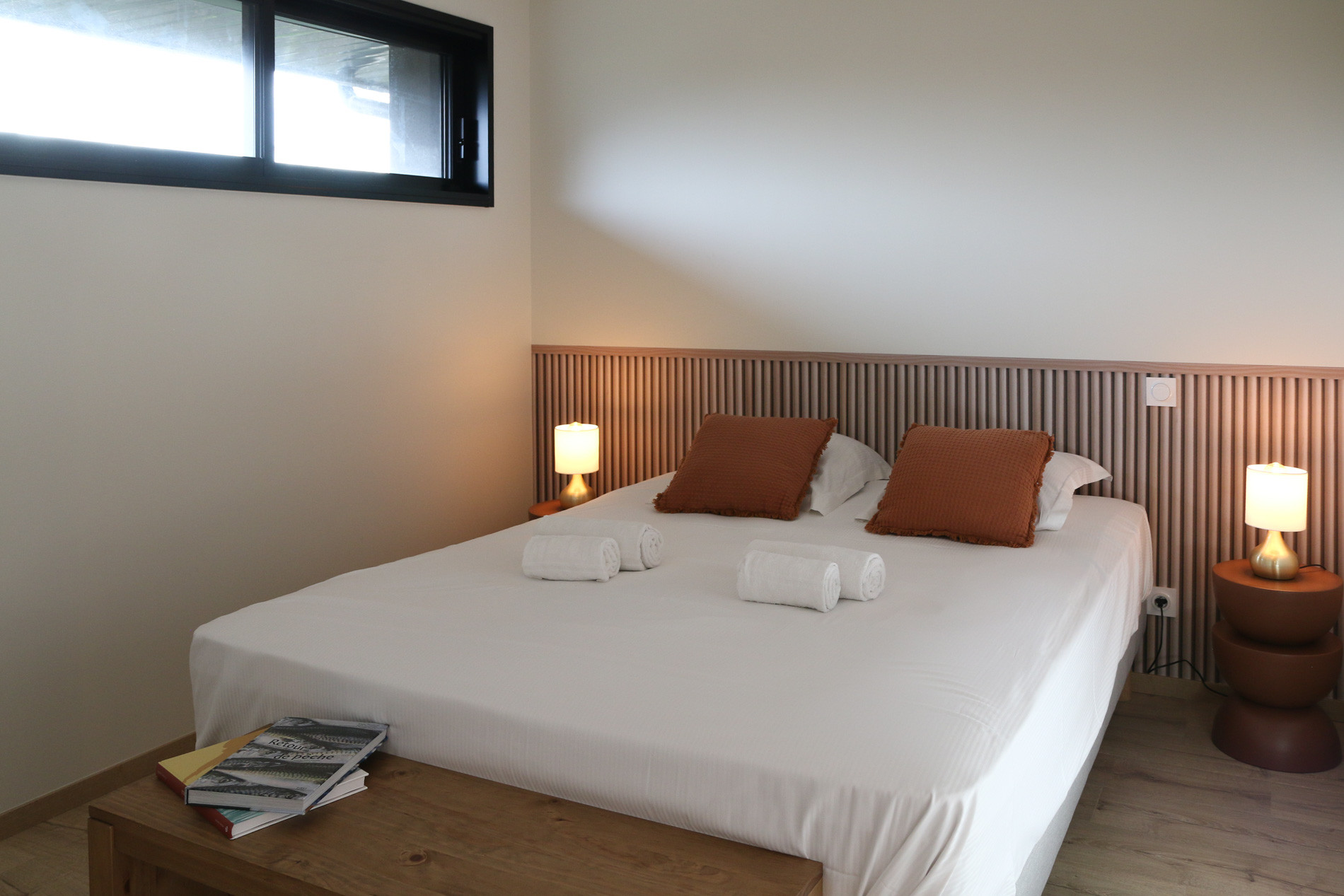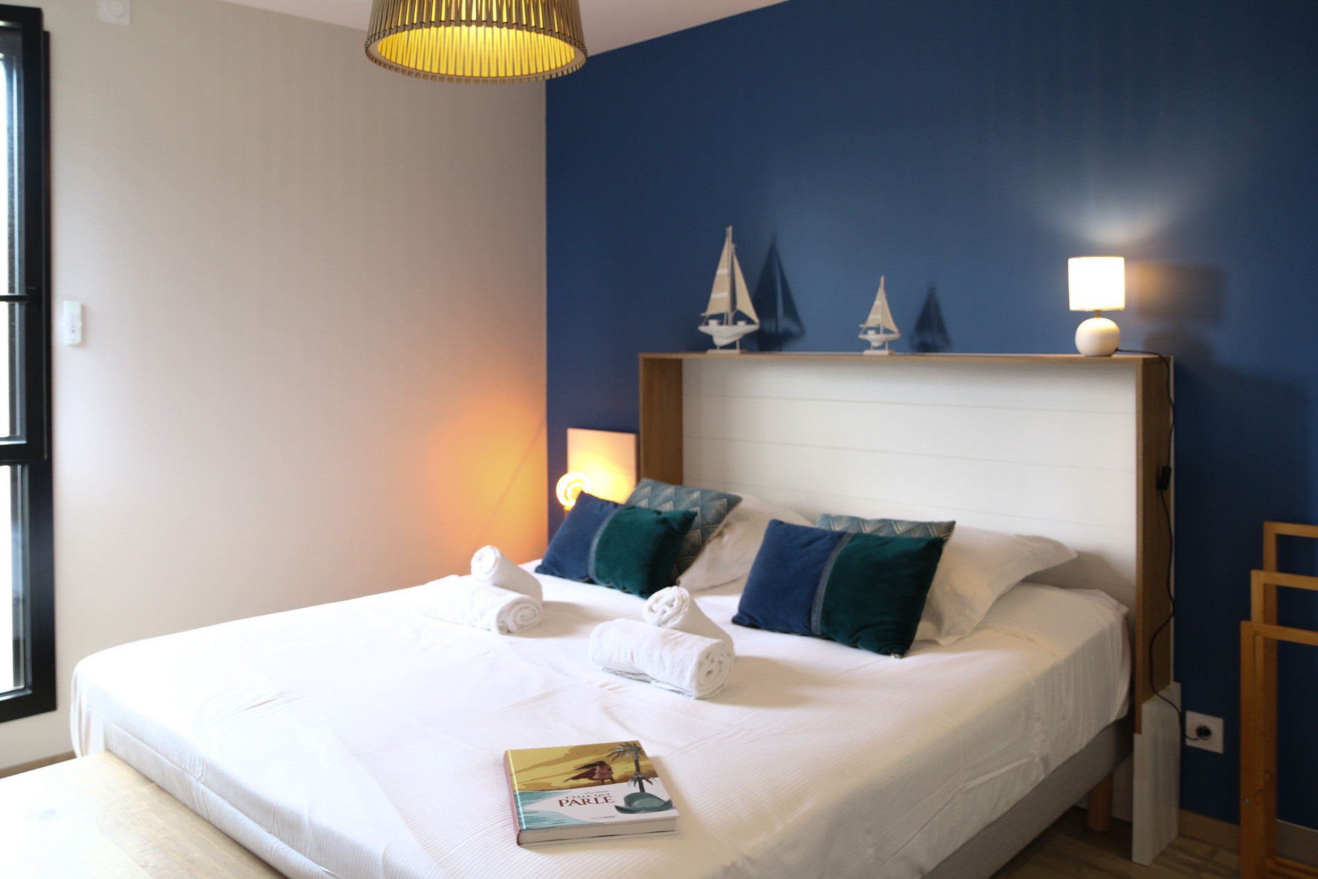 Ker Gavilou accueille confortablement jusqu’à 6 personnes réparties dans trois belles chambres situées à l’étage. Chacune dispose d’un lit Queen size (160x200) et de rangements. Deux d’entre elles partagent une salle d’eau fonctionnelle, tandis que la troisième bénéficie de sa propre salle d’eau privative. Deux toilettes sont disponibles dans la maison, une au rez-de-chaussée et une à l’étage.Location de vacances avec deux grandes terrasses en Bretagne