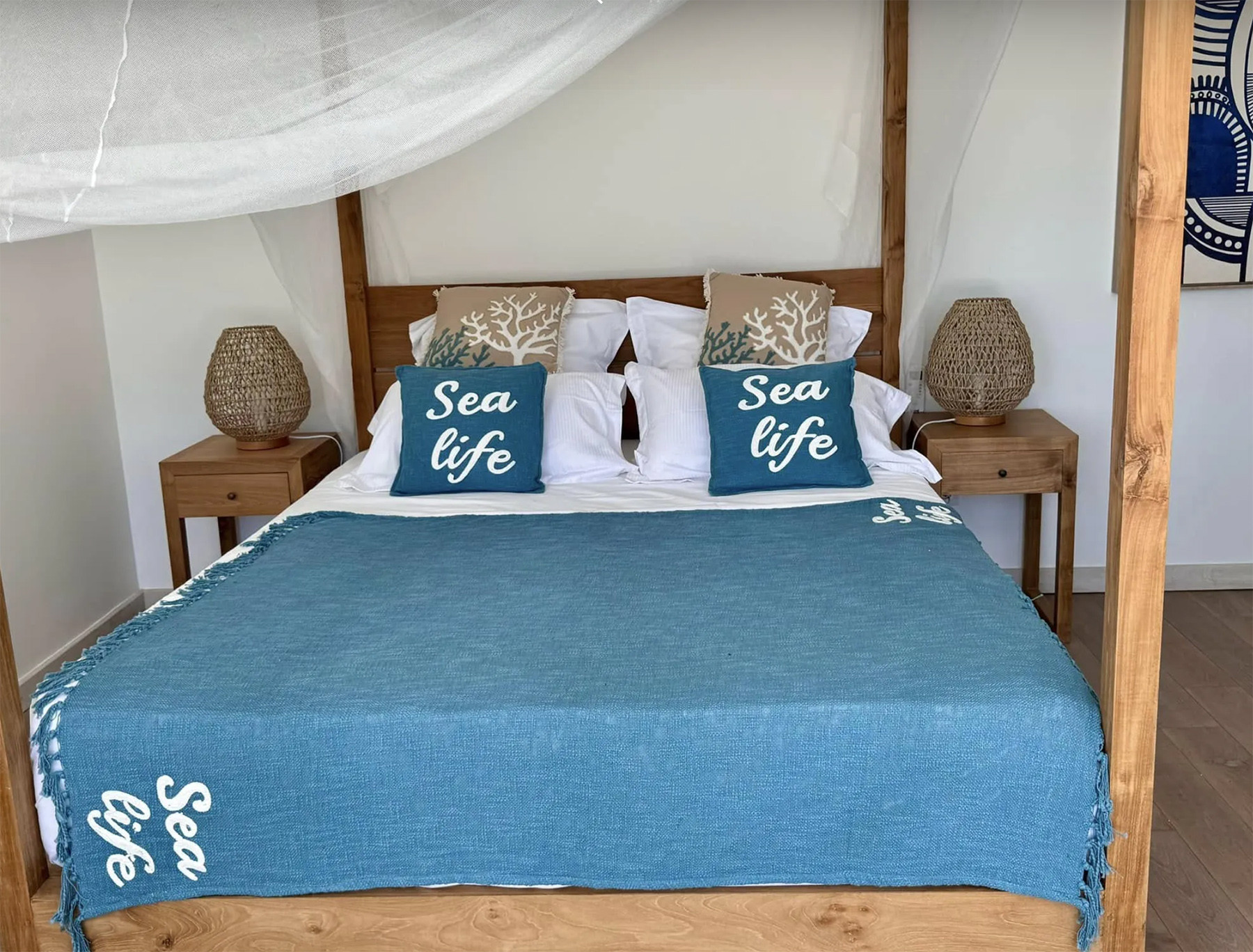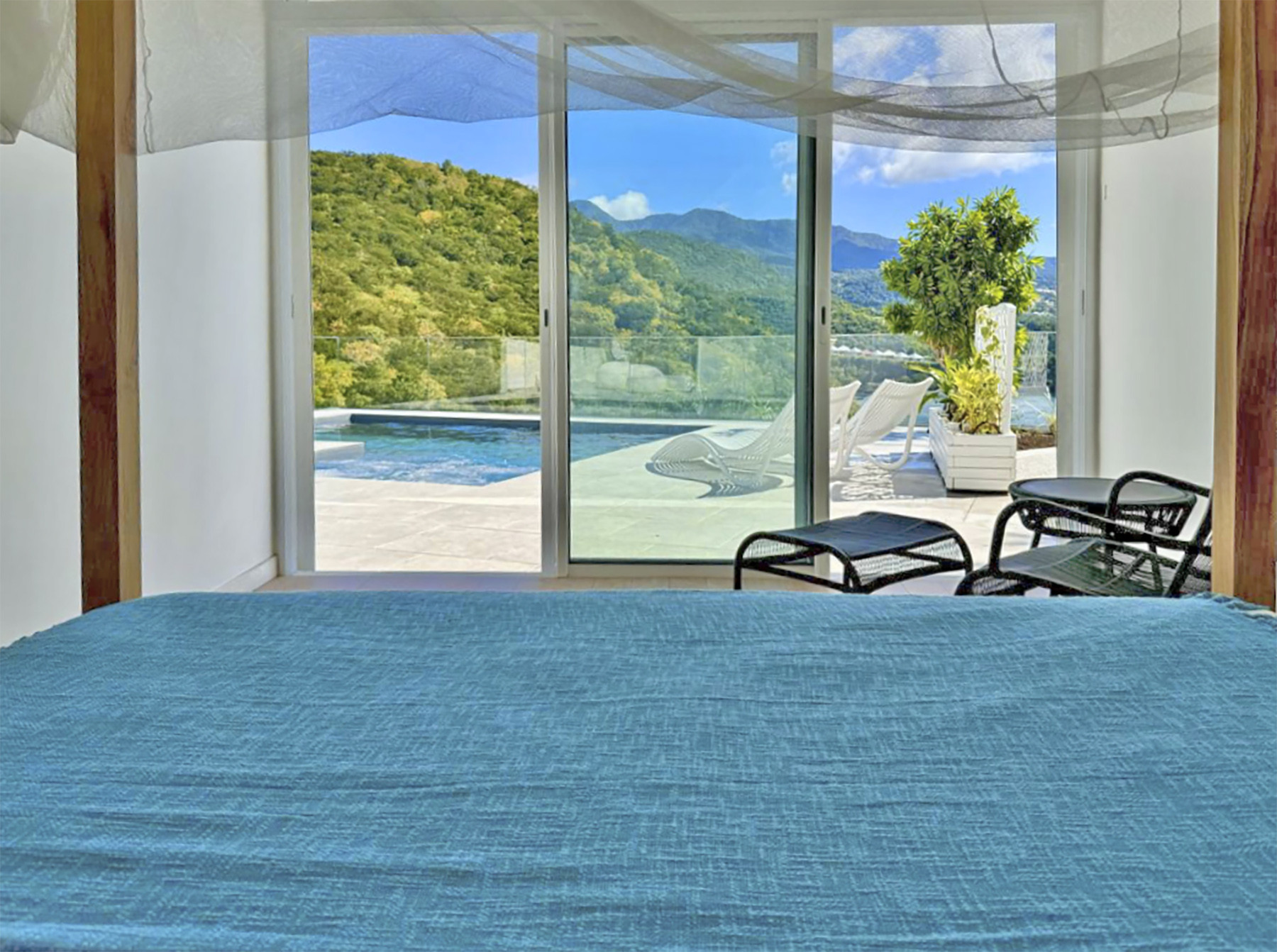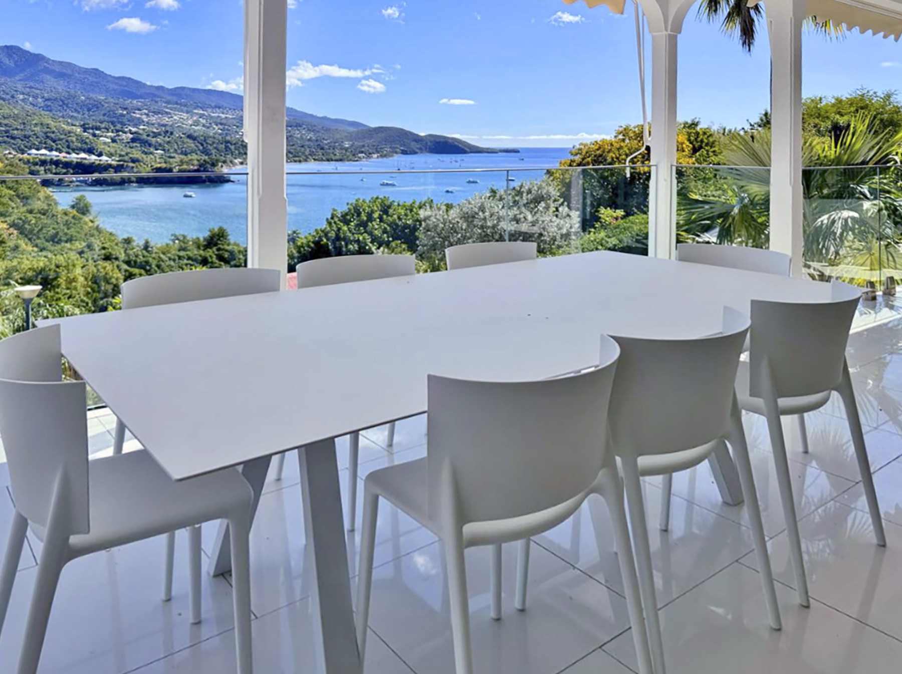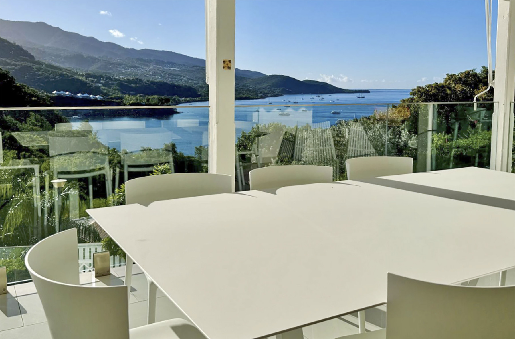 Une villa de vacances pensée pour vivre dedans-dehorsDepuis la grande terrasse, la vue plongeante sur la mer des Caraïbes est un spectacle permanent. Le salon et la cuisine ouverte composent un espace convivial, baigné de lumière, où l’on se retrouve naturellement autour d’un repas ou d’un verre face à l’horizon. Les quatre chambres climatisées se répartissent comme suit : — 3 chambres avec lit Queen Size, salle de douche privative et WC — 1 chambre avec lit single pour un total de 3 salles de douche avec WC.