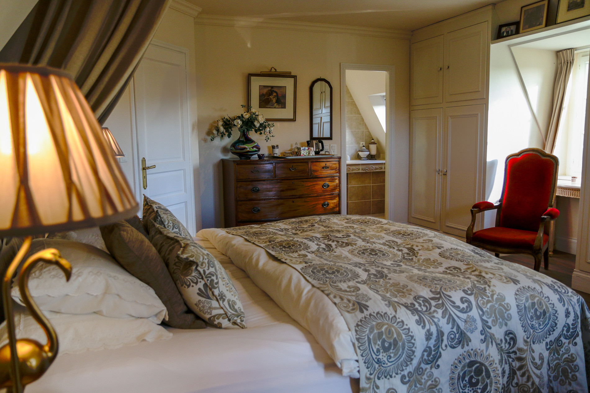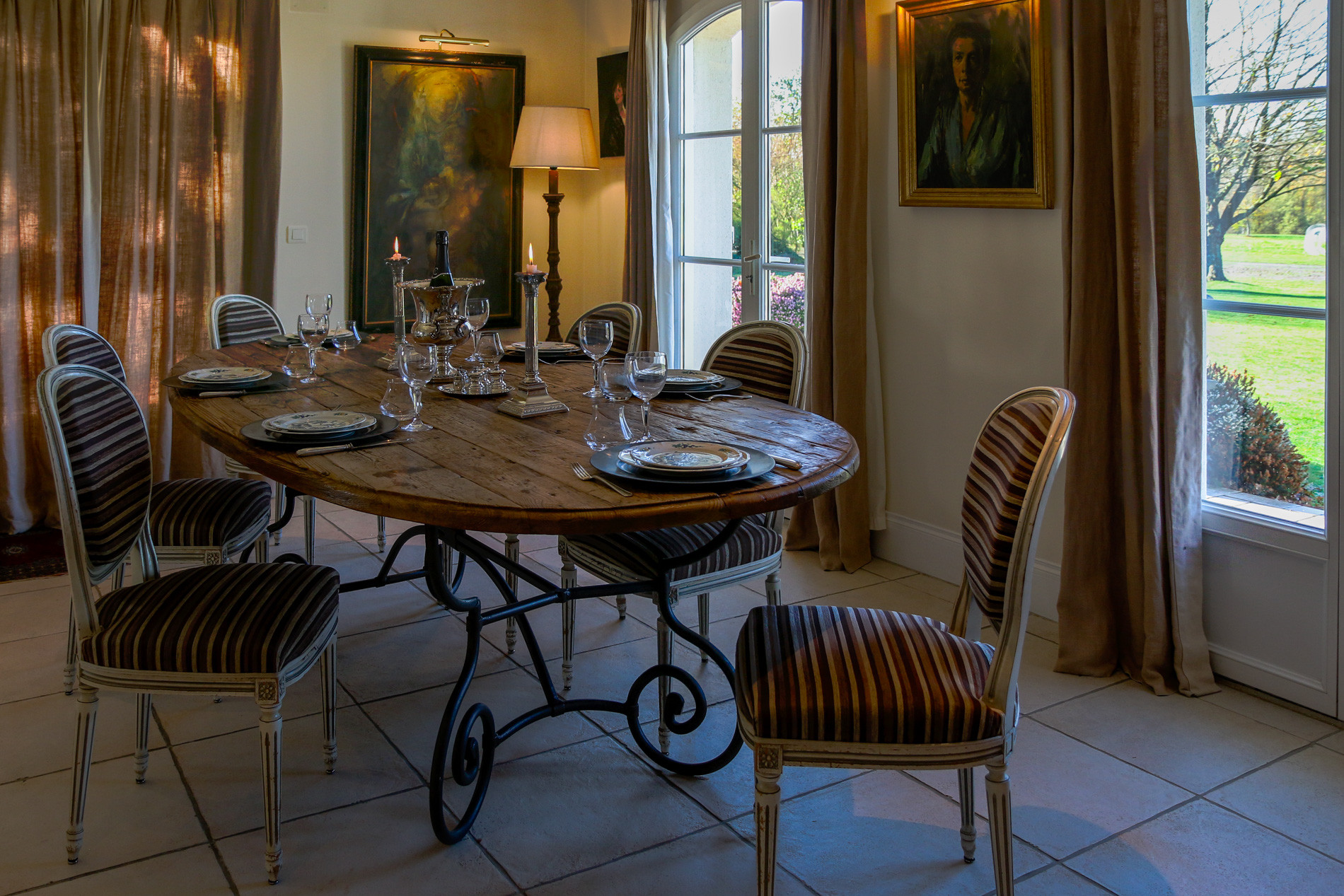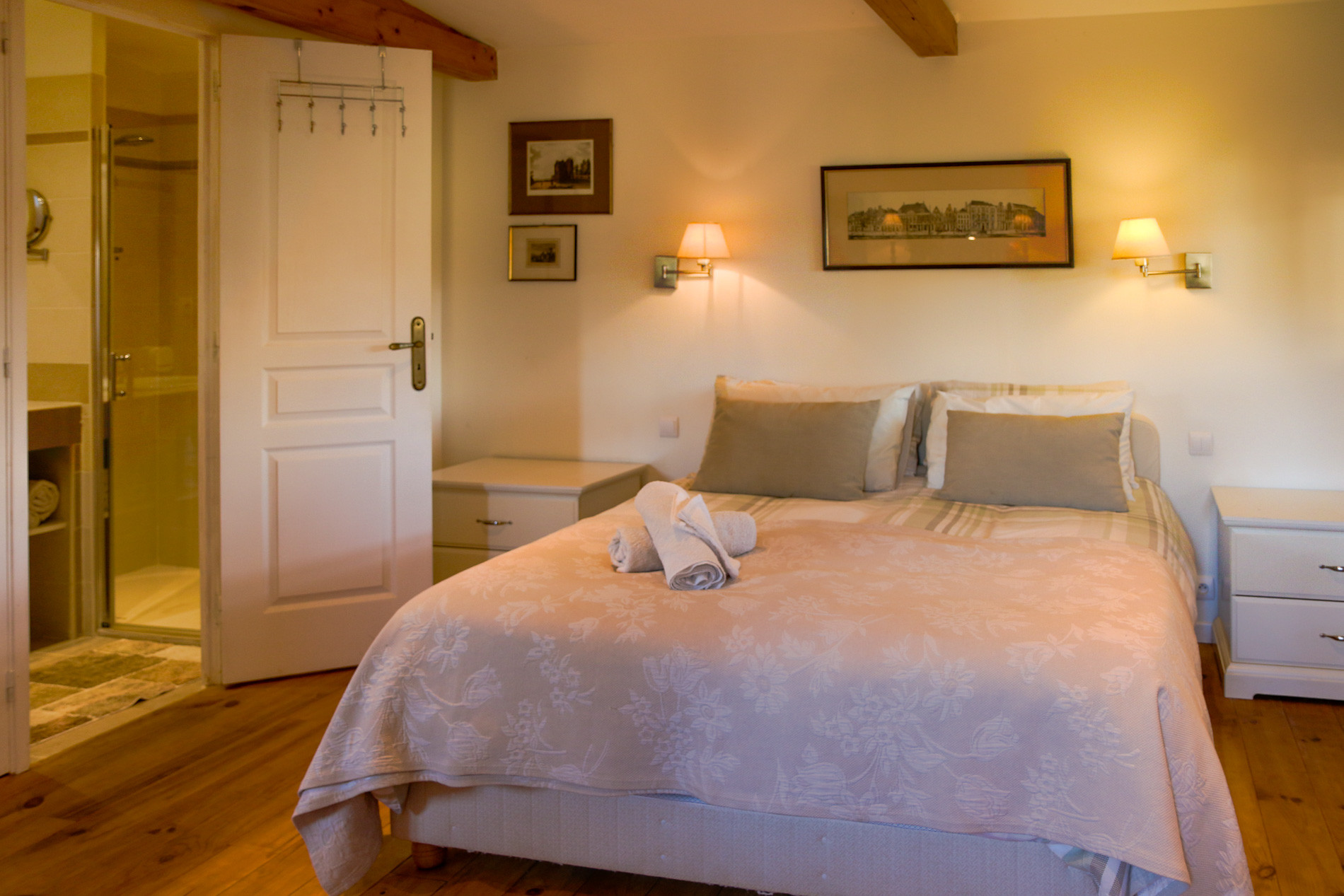 L’Oisette est une maison cossue offrant de vastes espaces et un mobilier de qualité. Le rez-de-chaussée est consacré aux pièces de vie. Une grande cuisine entièrement équipée s’ouvre sur une superbe salle à manger baignée de lumière et décorée dans un style campagne chic raffiné. Partagez vos repas autour d’une grande table en bois tout en profitant de la vue sur le jardin qui se prolonge vers le golf. Le salon, aménagé avec beaucoup de goût, est agrémenté d’antiquités et d’œuvres d’art uniques. Durant les mois d’hiver, profitez de moments de détente au coin de la cheminée (utilisable du 1 novembre au 31 mars).Villa avec trois chambres et un cottage indépendant, pour accueillir jusqu’à 8 personnes dans un cadre idéal associant travail et loisirs