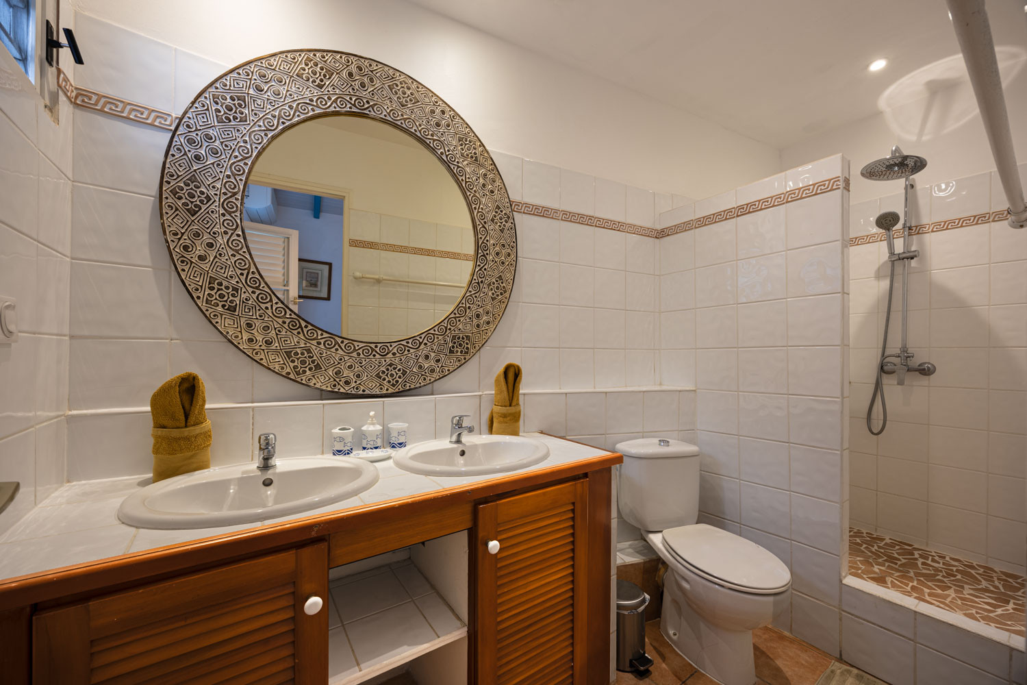 La maison principale dispose de quatre chambres doubles avec salle de douche privative. Un cottage indépendant complète l’ensemble avec une chambre double et une chambre twin partageant une salle de douche, permettant de préserver l’intimité de chacun.