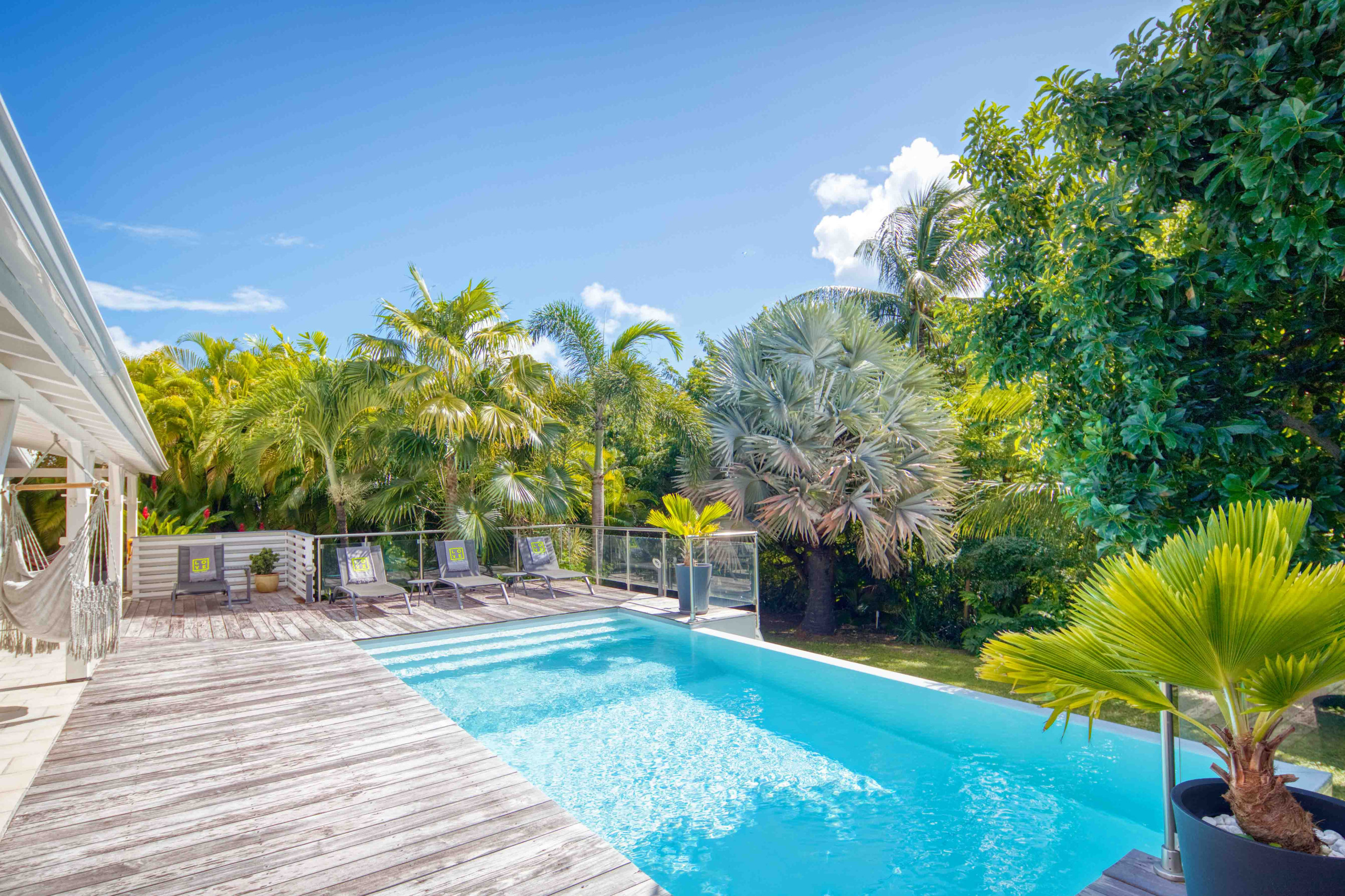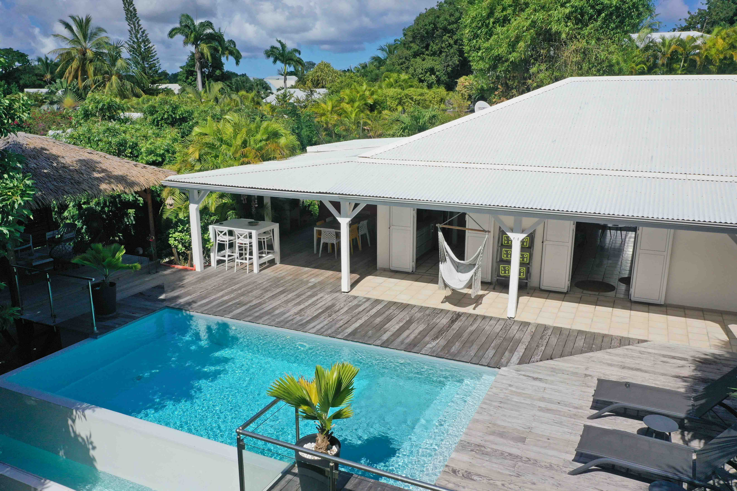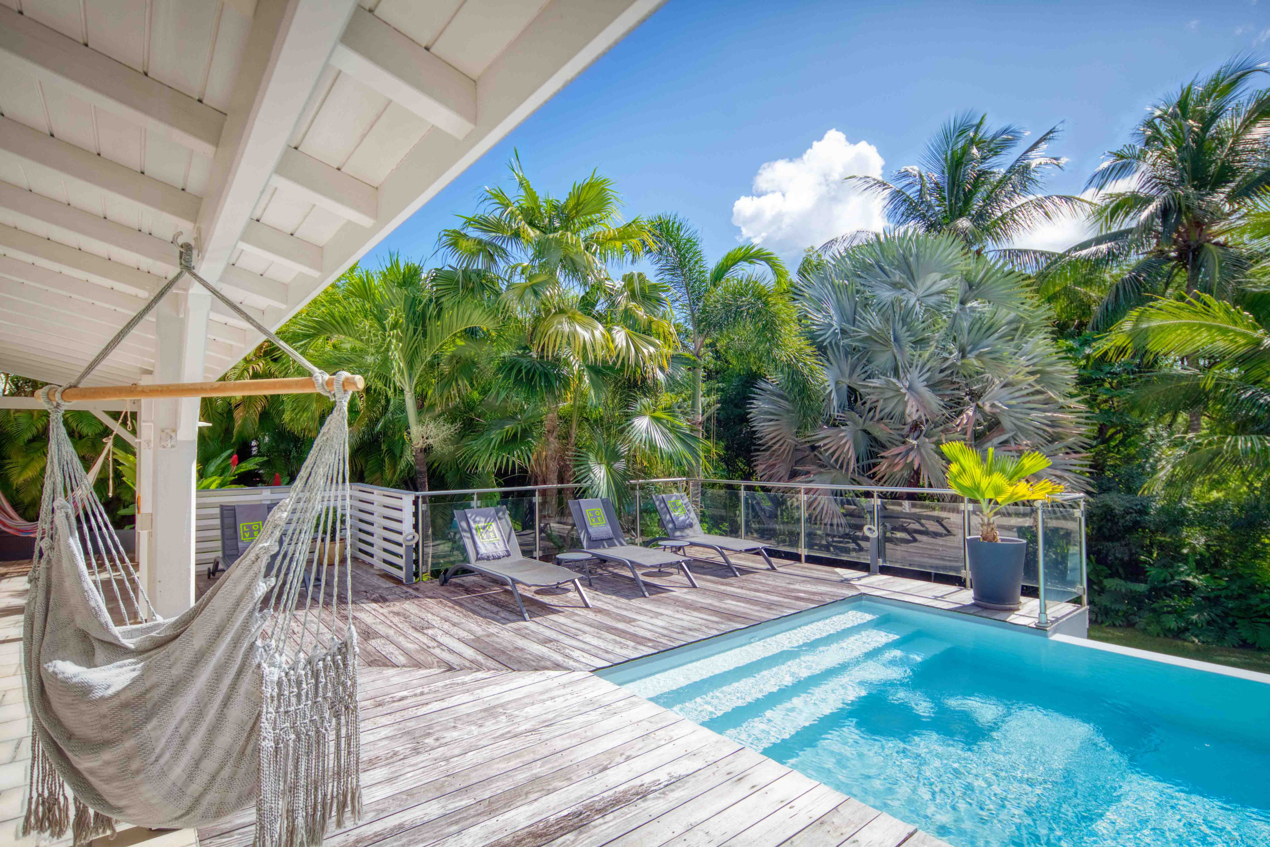 Location de villa avec piscine et jardin à Saint-FrançoisÀ l’extérieur, profitez d’une belle terrasse aménagée, d’un jardin tropical et de transats pour vous prélasser. Vous disposerez d’une piscine au sel pour des baignades rafraîchissantes et d’un jacuzzi pour des instants de détente. La terrasse est l’endroit idéal pour siroter un ti-punch en toute sérénité.
