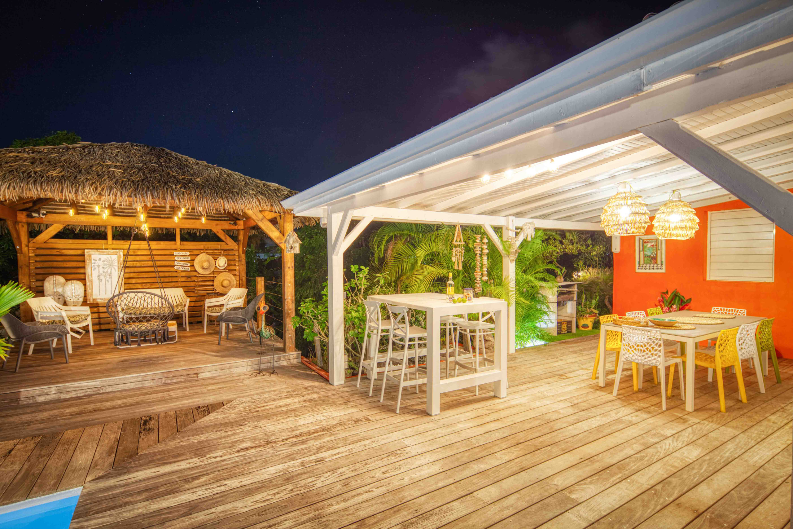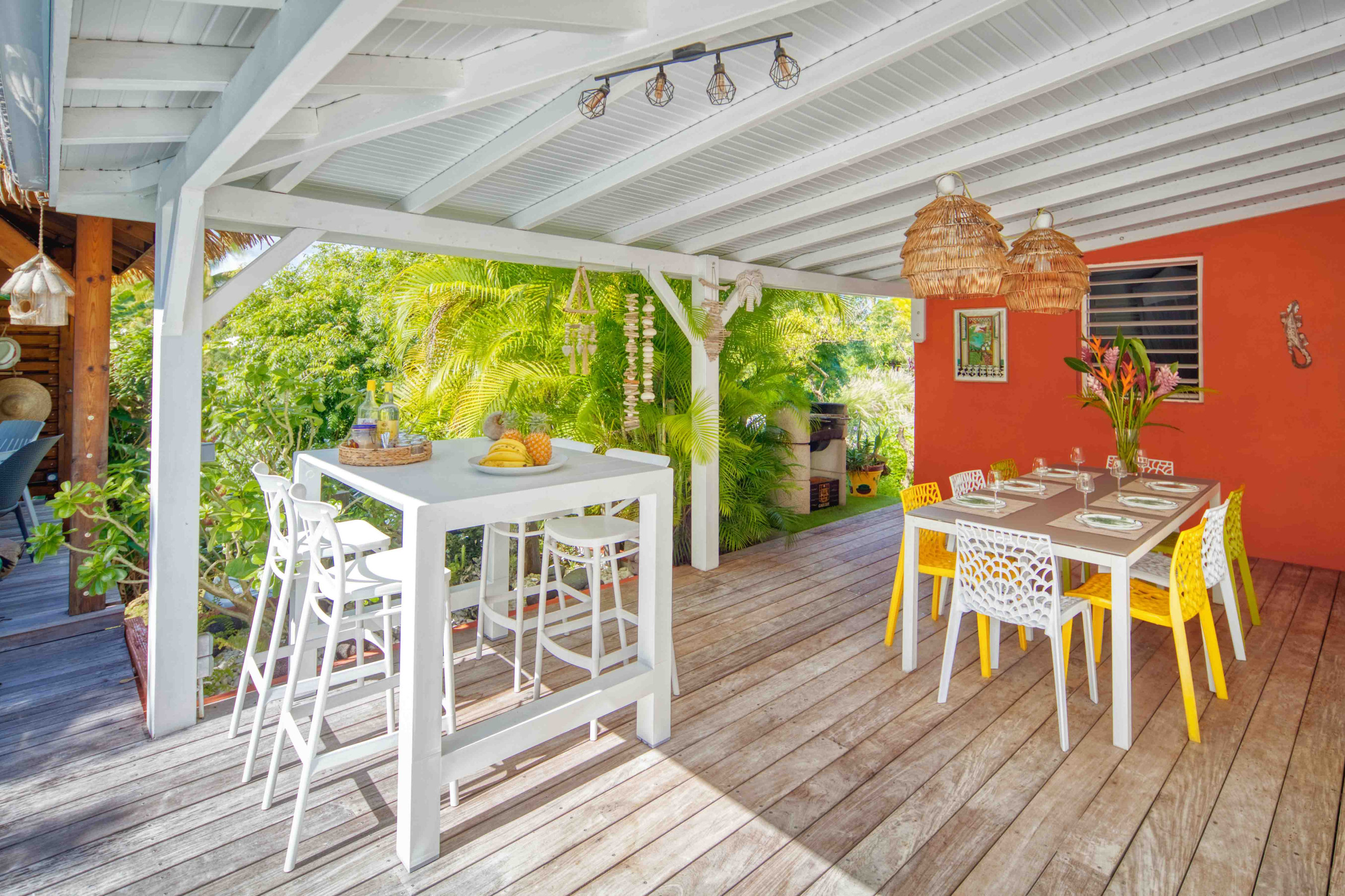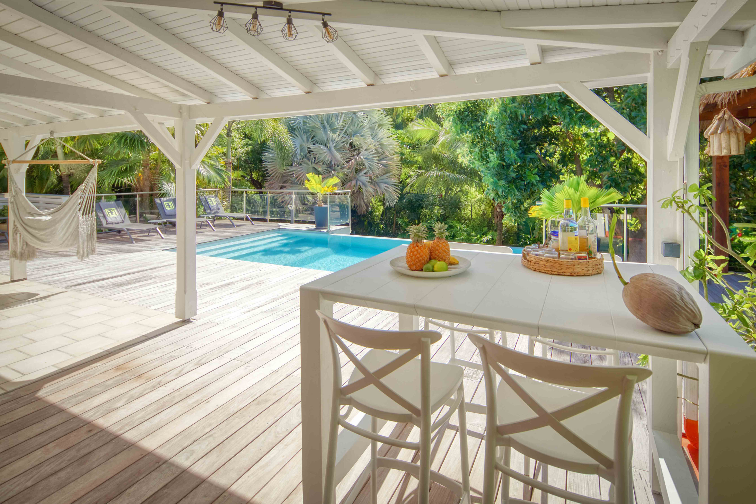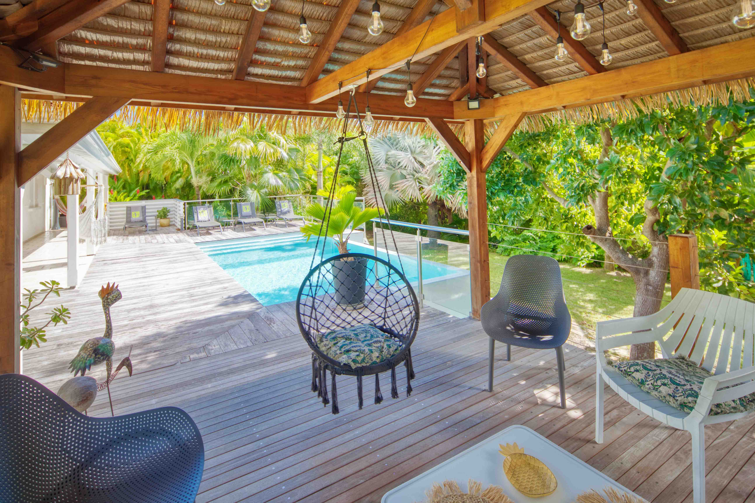Location de villa avec piscine et jardin à Saint-FrançoisÀ l’extérieur, profitez d’une belle terrasse aménagée, d’un jardin tropical et de transats pour vous prélasser. Vous disposerez d’une piscine au sel pour des baignades rafraîchissantes et d’un jacuzzi pour des instants de détente. La terrasse est l’endroit idéal pour siroter un ti-punch en toute sérénité.