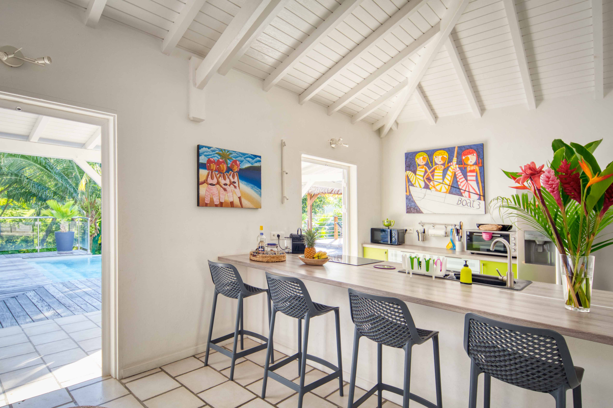 Louer une maison de vacances en GuadeloupeLa villa Avocatier vous offre quiétude et bien-être pour vos vacances, avec une décoration soignée et un aménagement moderne et confortable.