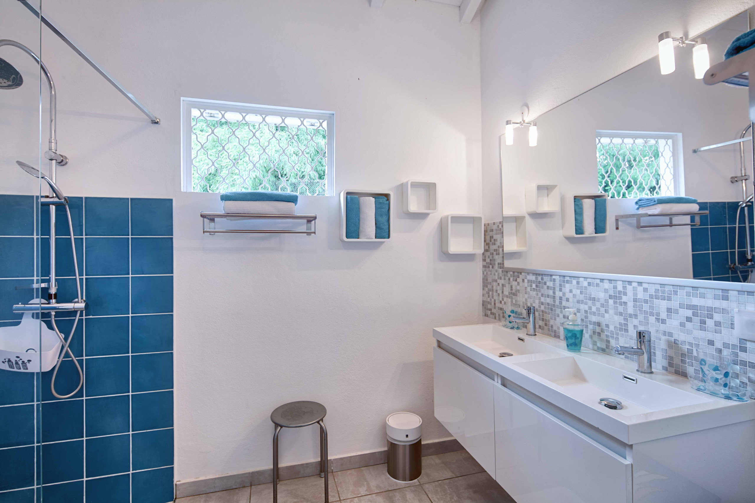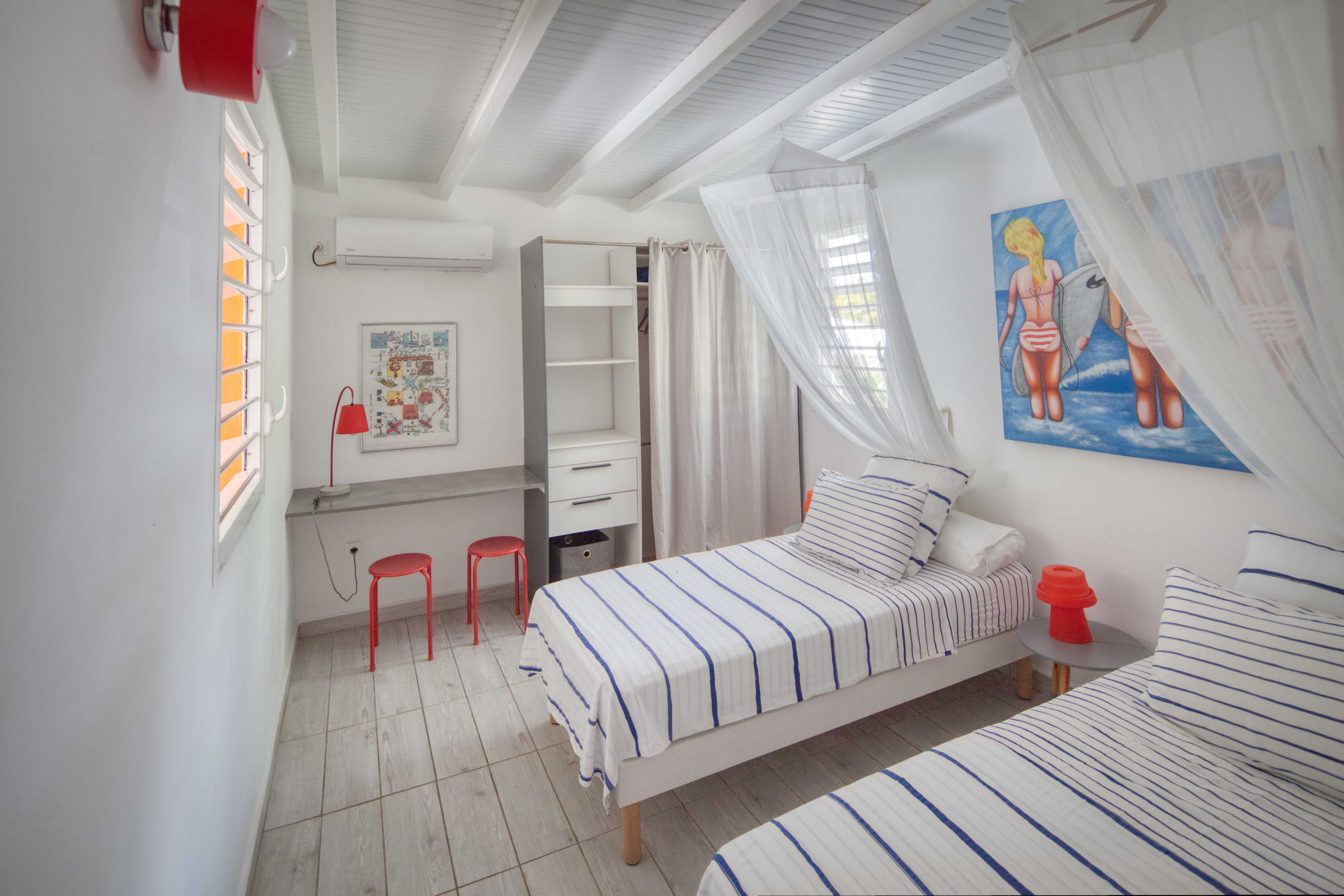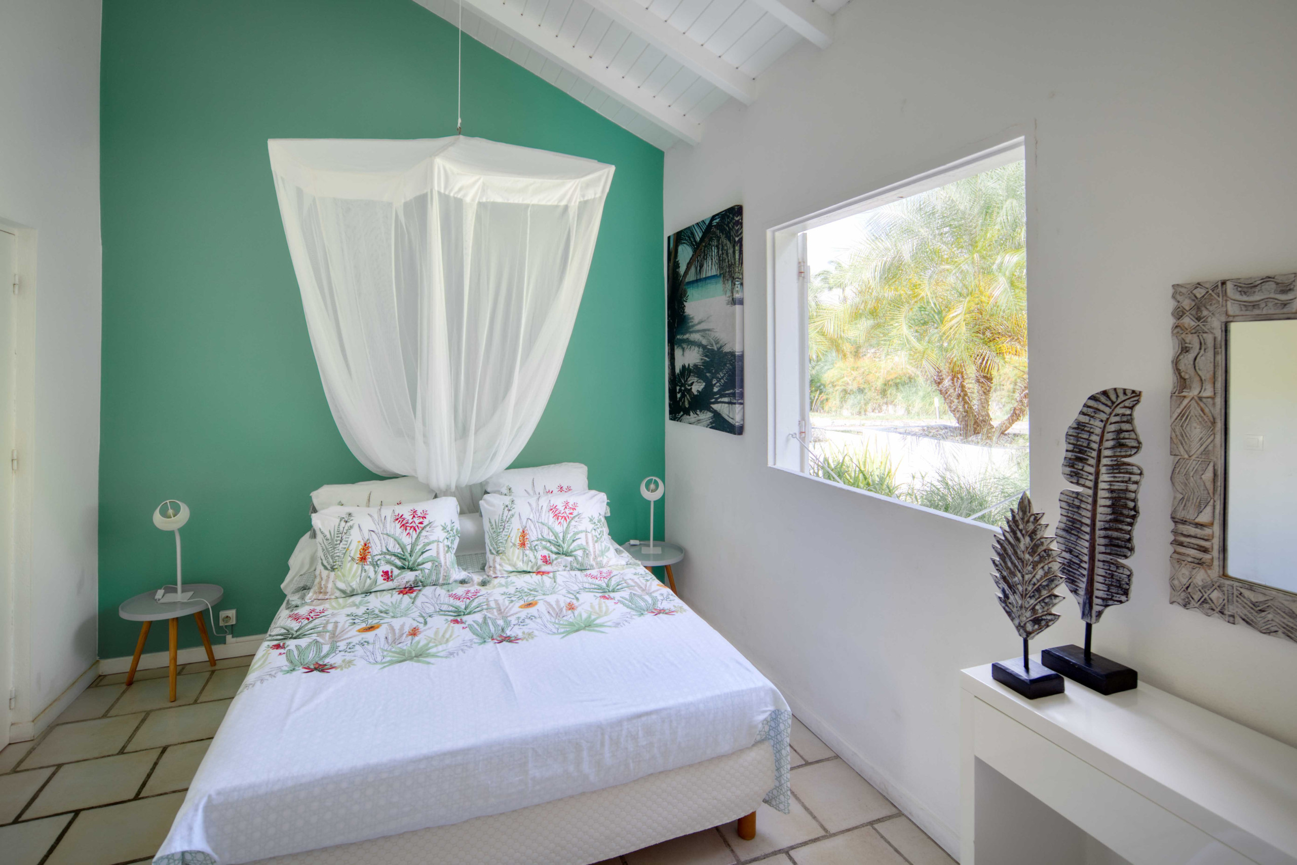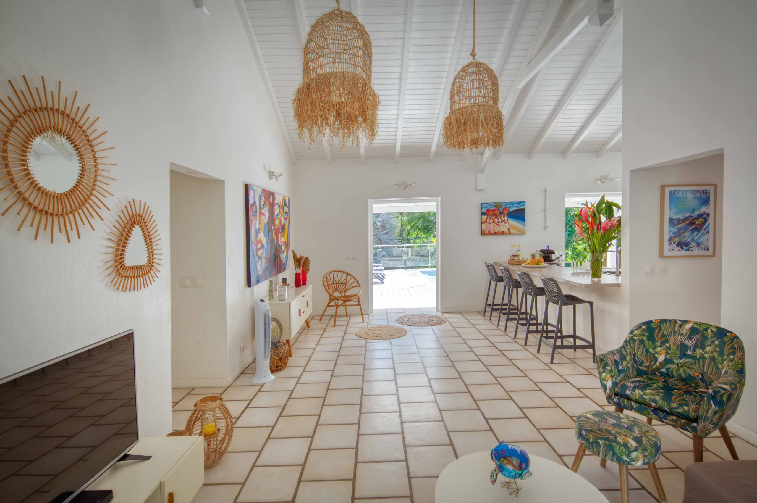 Location saisonnière à Saint-FrançoisLe salon, la cuisine et la salle à manger forment un vaste espace de vie baigné de lumière, à la décoration contemporaine. La villa Avocatier comprend trois chambres climatisées, chacune dotée d’une salle de bain attenante : deux chambres doubles et une chambre twin (lits jumeaux).