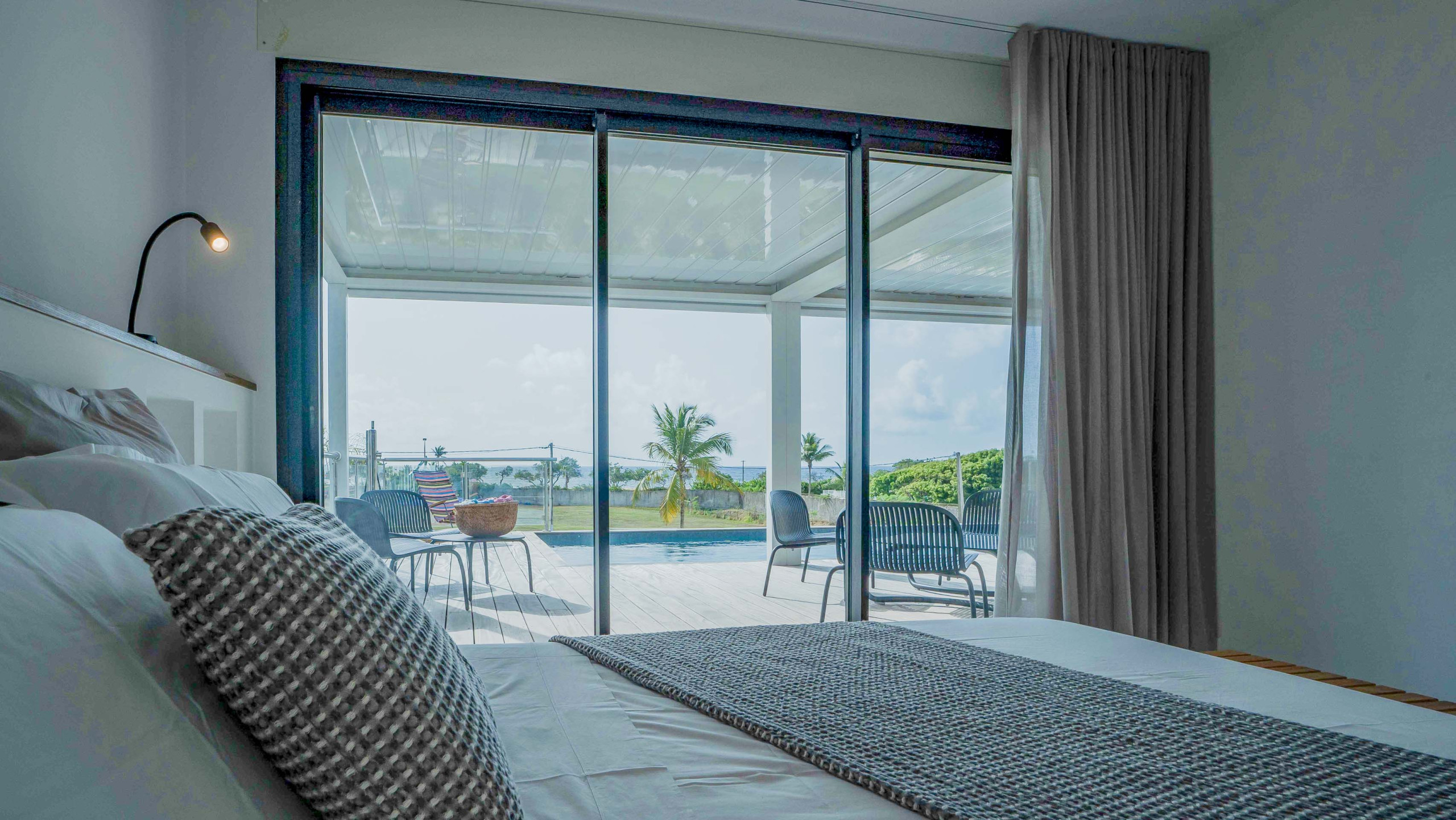 Villa contemporaine à Saint-François, la Villa Coralia séduit par sa vue sur la plage des Raisins Clairs, ses suites avec vue mer, ses espaces de vie élégants et sa piscine privée, idéale pour des vacances inoubliables en Guadeloupe