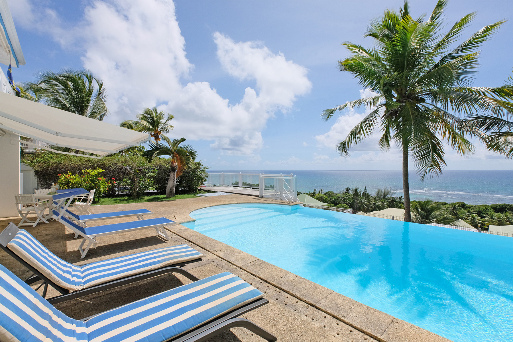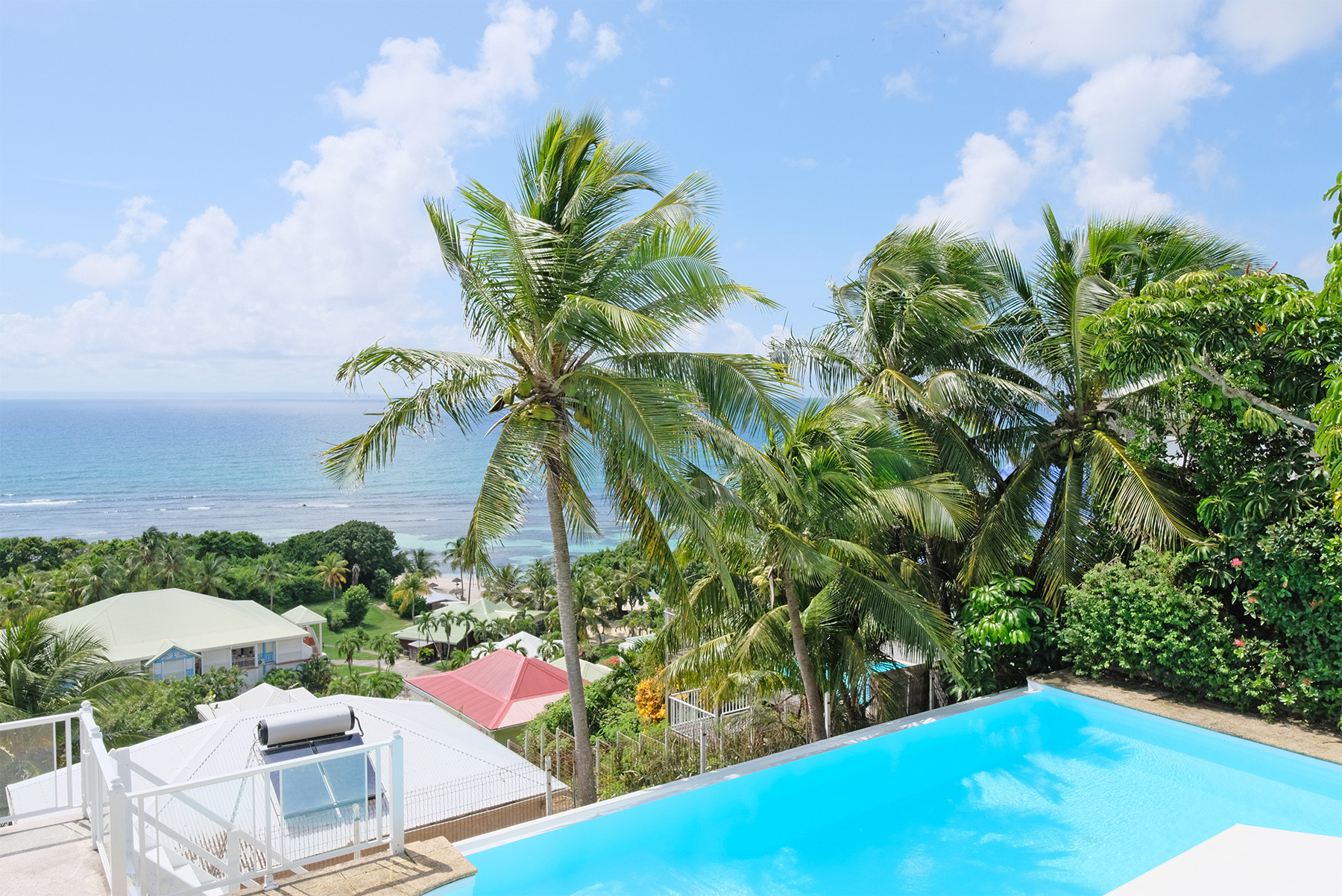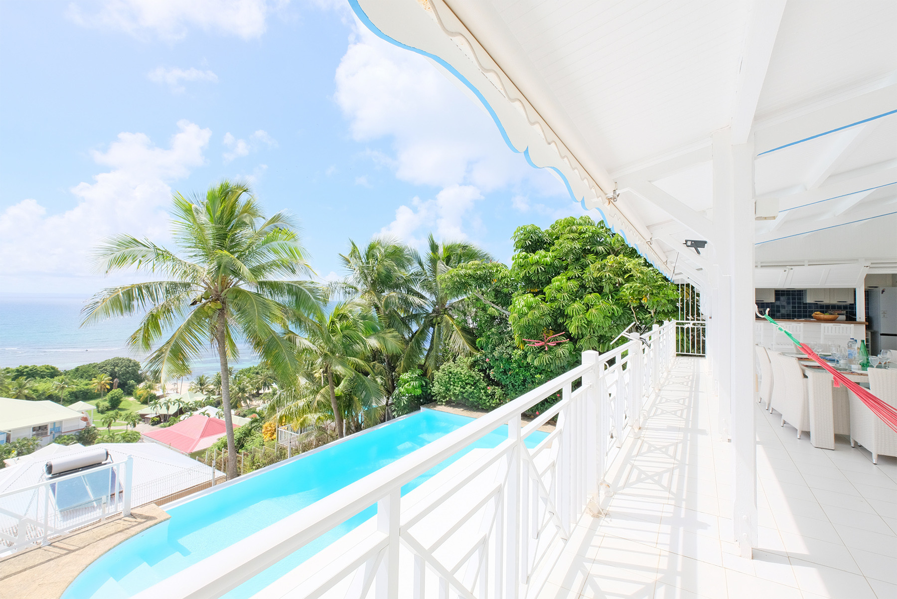 Votre villa idéale pour des vacances en famille à Sant FrançoisIdéalement située à l’Anse des Rochers, la Villa Noé offre un cadre de vacances rêvé, entre activités sportives et farniente au bord de la piscine. À quelques pas seulement, un petit sentier vous mènera directement à la plage . Le doux clapotis des vagues, les reflets du soleil sur la mer… ici, le décor est une carte postale. C'est même à pied que vous pourrez rejoindre la plage en quelques minutes.Villa tout confort à l'Anse des Rochers: profitez d’un cadre paradisiaqueLe salon et la cuisine s'unissent pour créer une belle pièce de vie sous une impressionnante charpente aux poutres apparentes. La Villa Noél abrite trois chambres climatisées. La suite parentale est équipée d’un lit king Size avec sa salle de douche et son toilette. Les deux autres chambres (1 double et une twin) se partagent une salle de douche.Villa avec piscine à débordement et vue merLa terrasse de 38m2 prolonge agréablement la villa. On y trouve l'espace repas de plein air et sa vue imprenable. On accède à la piscine par un escalier latéral. Aux dimensions généreuses la piscine à débordement et ses transats vous attendent pour de véritables moments de relaxation.À la Villa Noé, chaque instant se vit entre ciel, mer et lumière. C’est une parenthèse tropicale que l’on n’a plus envie de refermer..