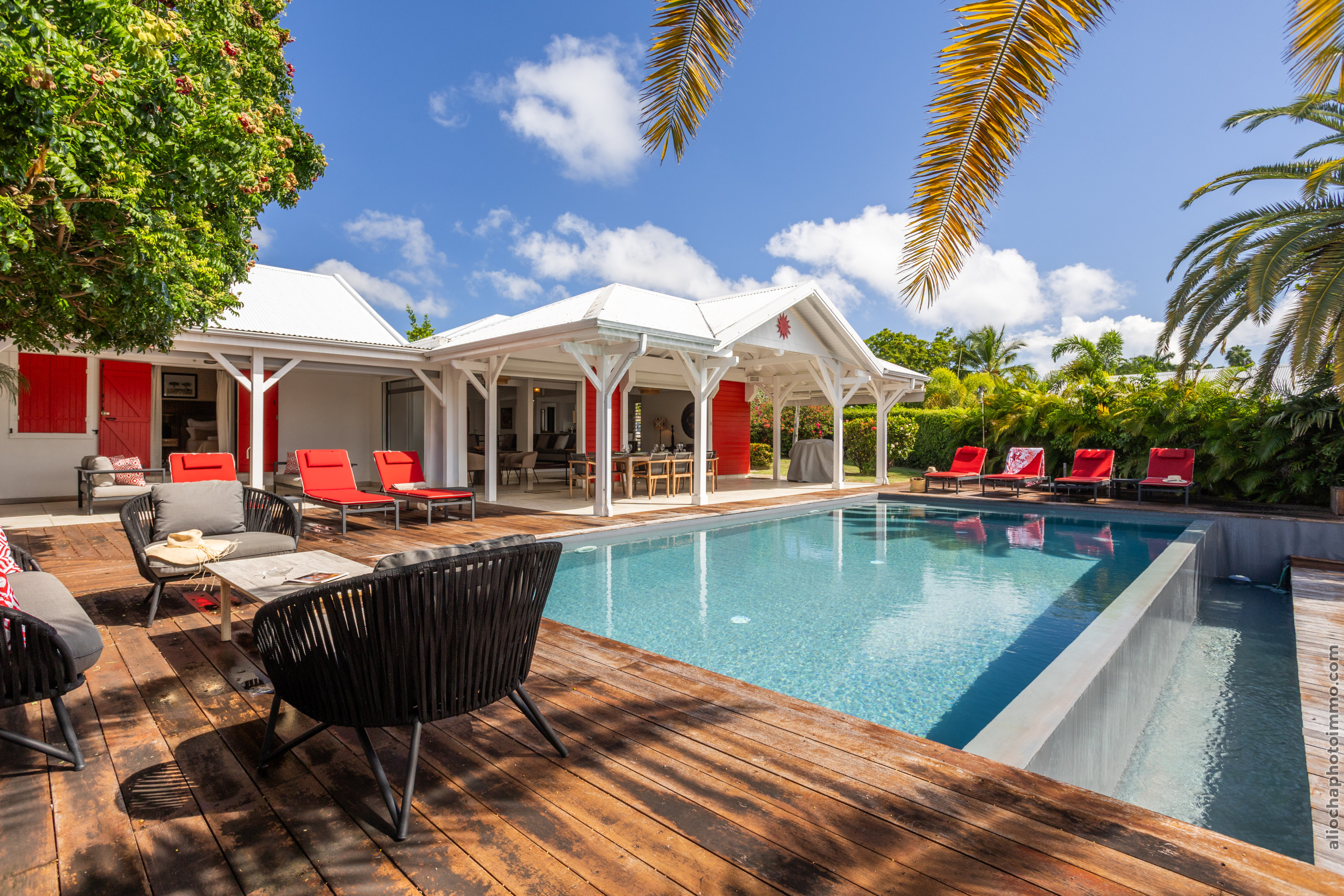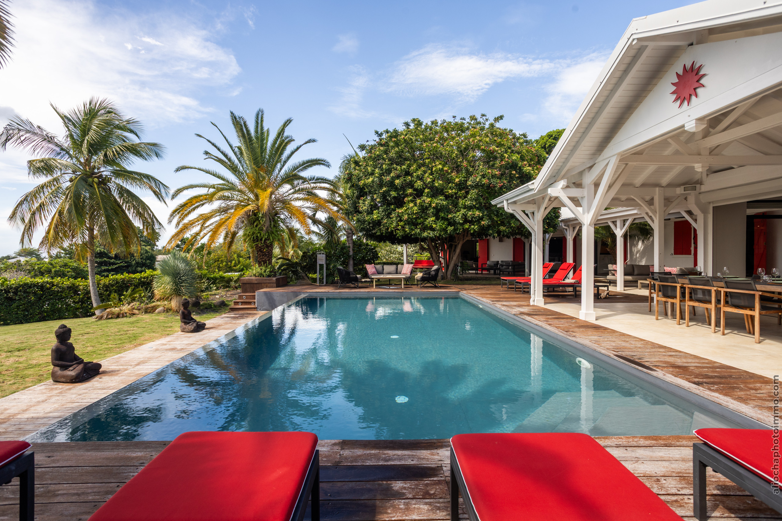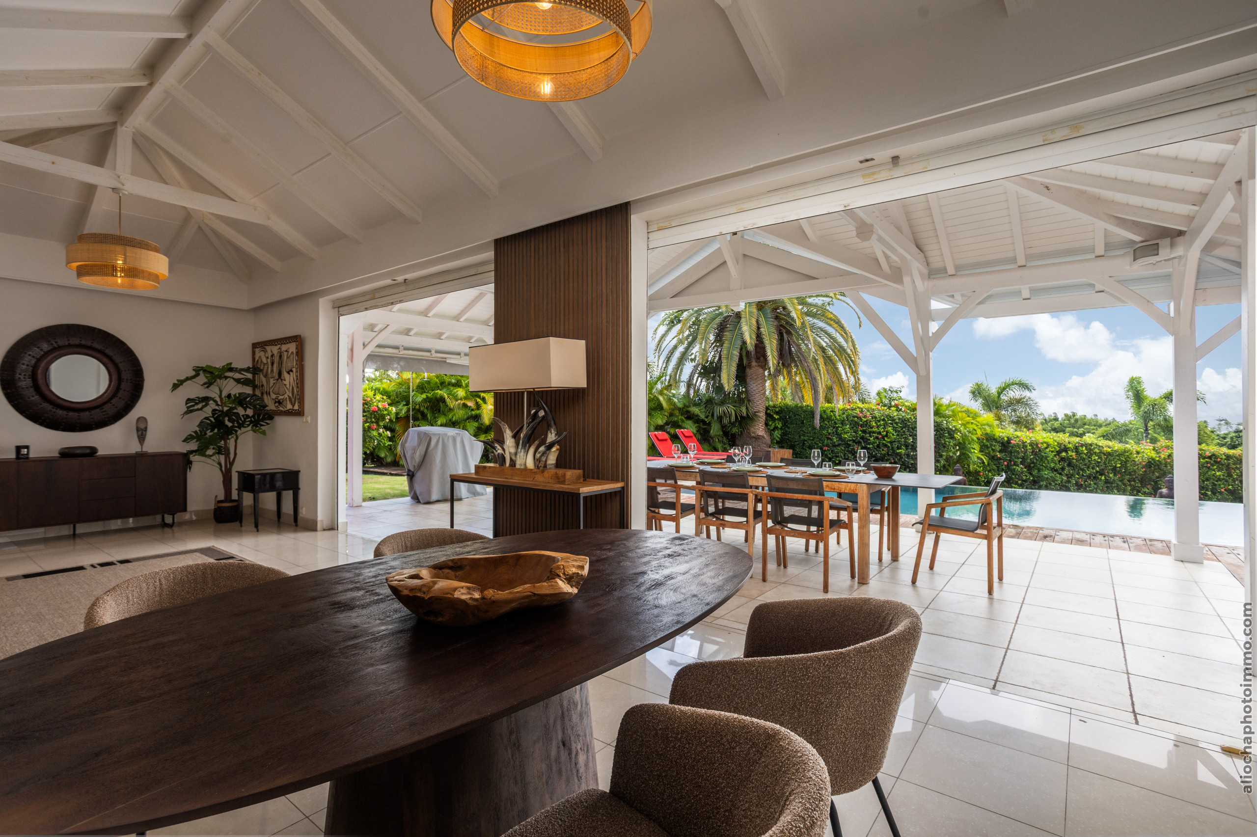 La Villa Sous le Soleil vous garantit un séjour exceptionnel dans un cadre luxueux, avec une vue imprenable sur le prestigieux golf de Saint-François et la mer. Ce lieu d'exception offre un confort inégalé, idéal pour profiter pleinement de la tranquillité et de l’élégance d’une villa haut de gamme.