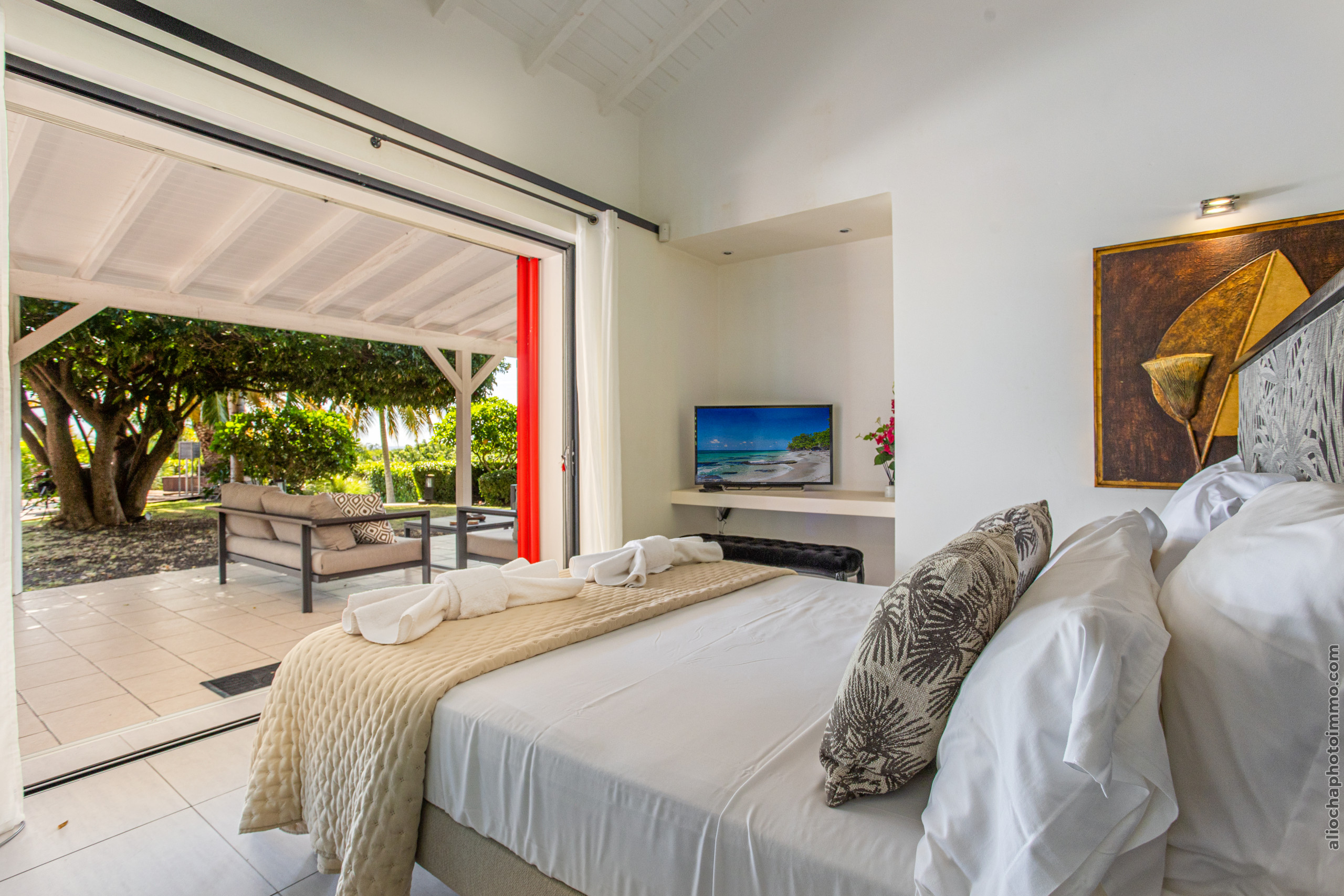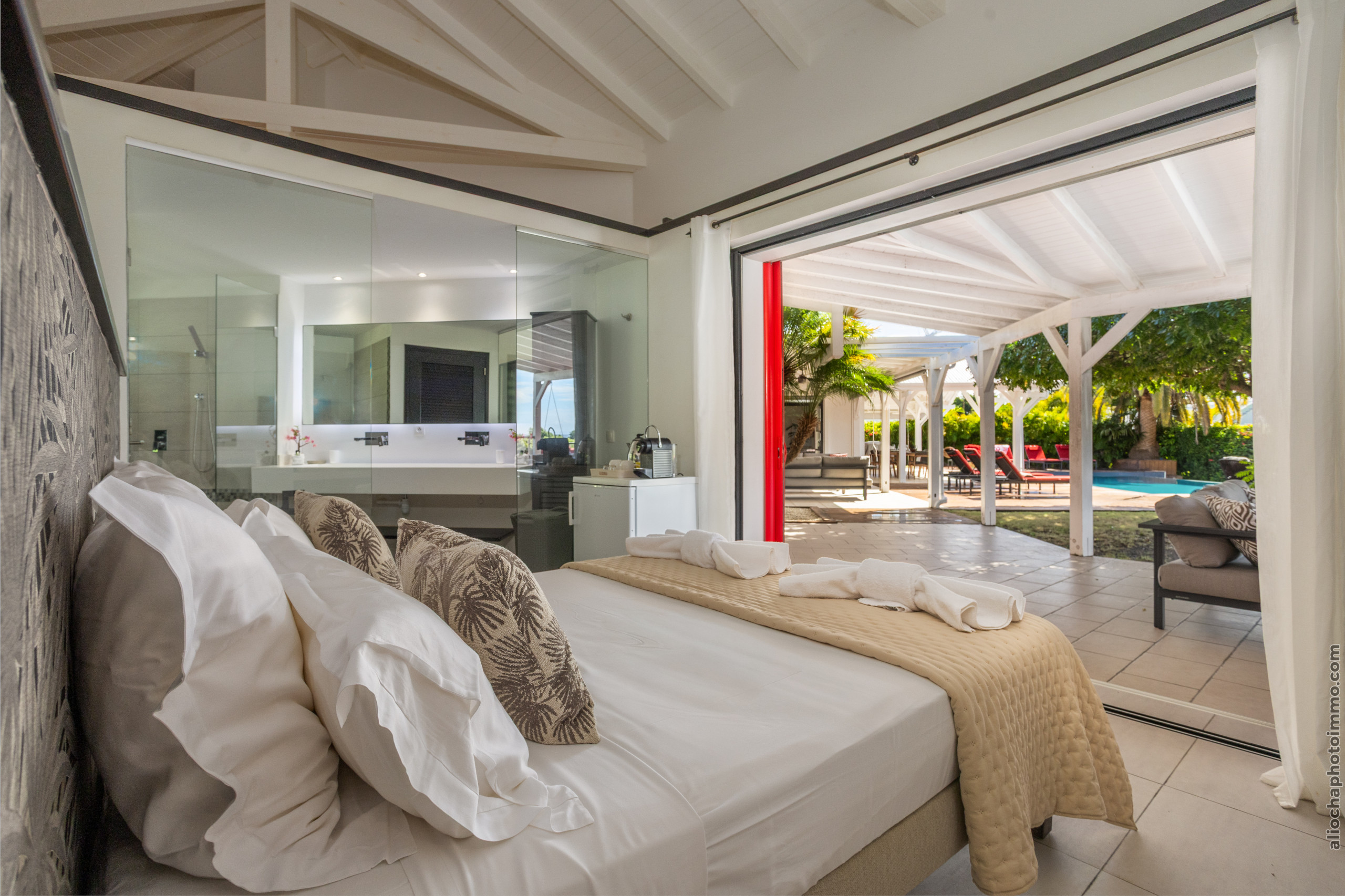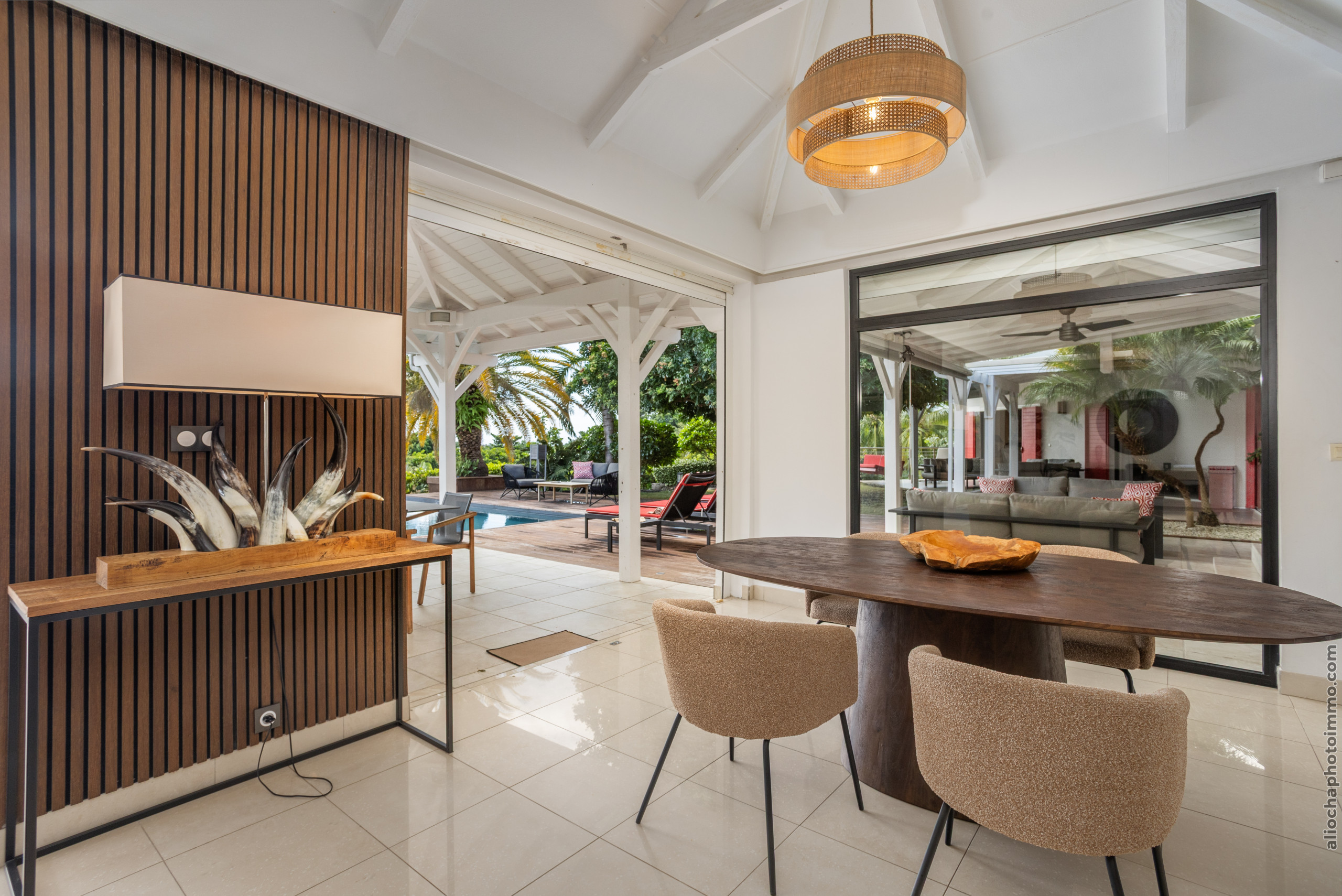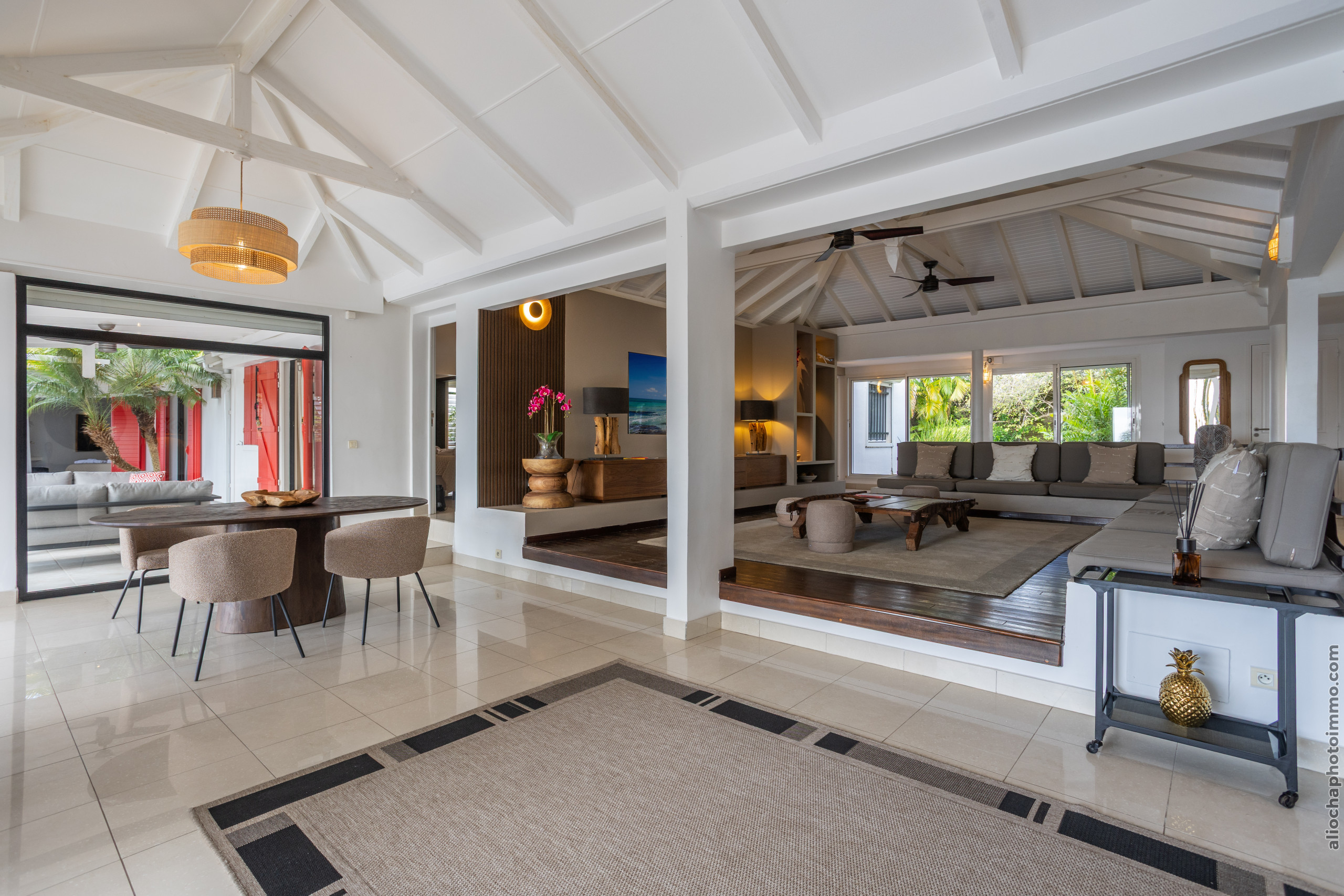La Villa Sous le Soleil vous garantit un séjour exceptionnel dans un cadre luxueux, avec une vue imprenable sur le prestigieux golf de Saint-François et la mer. Ce lieu d'exception offre un confort inégalé, idéal pour profiter pleinement de la tranquillité et de l’élégance d’une villa haut de gamme.